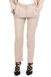 - Details: crêpe, basic solid colour, mid rise, regular fit, tapered leg, no appliqués, logo, hook-and-bar, zip, multipockets, cuffed hems, stretch, tailored