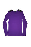 - Faux-leather panel with a zip placket at the top of each shoulder