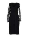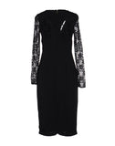 Midi dress in stretch viscose crepe fabric, back zip opening, with zipped slits on the back, with Fly zip pull, stretch lace inserts in matching colors, on the back on the front and on the sleeves.