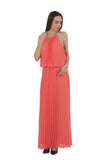 MSK Pleated Sleeveless Necklace Maxi Dress Coral