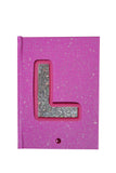 - Marquee lights shine in her initials against allover glitter sparkle front and back covers