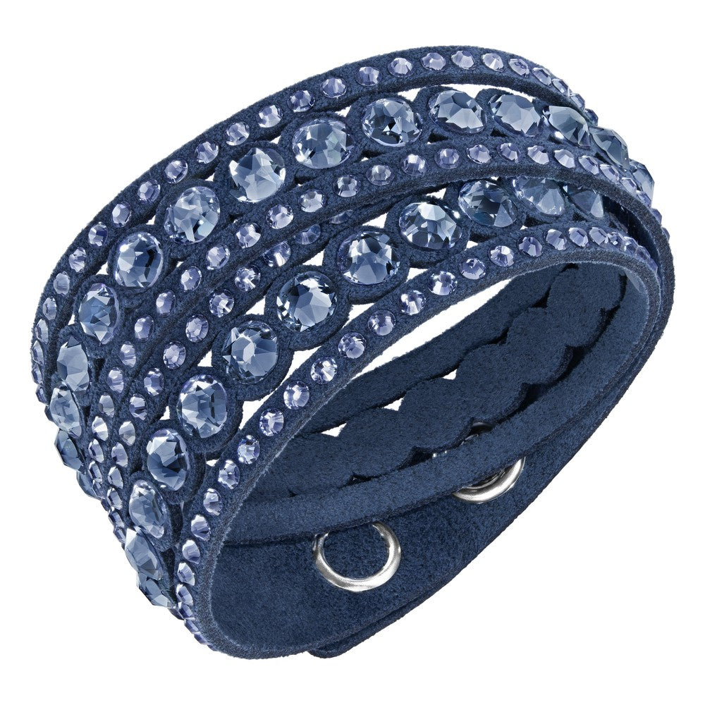 As a new face of the popular Slake series, items that upgrade clothing with sophisticated glow appear. I studded a blue tone crystal manually into Dark blue Alcantara® (artificial leather). A large round cut crystal is a new accent. Even this one, you can also enjoy styling with a sense of presence combined with other bracelets and with the same series of Slake ear jackets. Bracelet length: 36 cm.